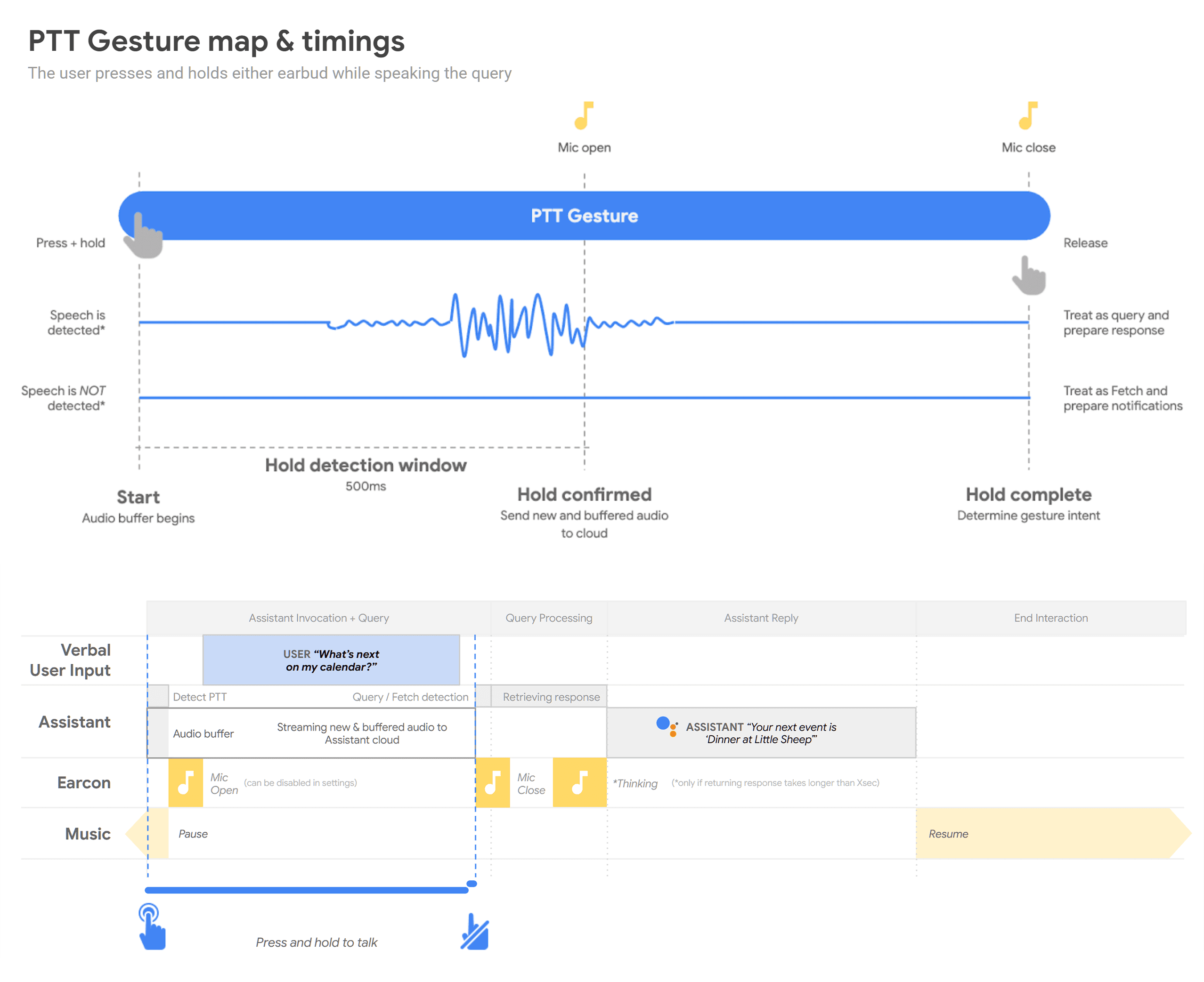 I authored the foundational UX specification for the Assistant experience that became the de-facto design manual for all subsequent Google hearables, introducing novel interactions and co-designing the complex out-of-box experience. To ensure product excellence, I traveled to Taiwan to personally oversee engineering implementation and actively blocked a launch to drive fixes for critical role-switching bugs.